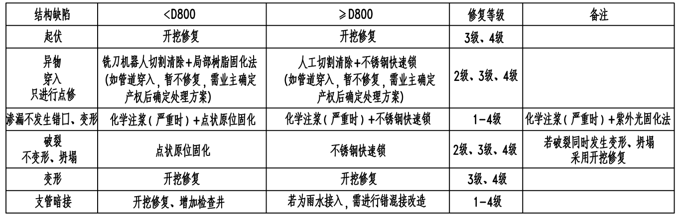 对于2级以下功能性缺陷,在清淤过程中一般都可以进行清除,不再单独进行功能性修复。