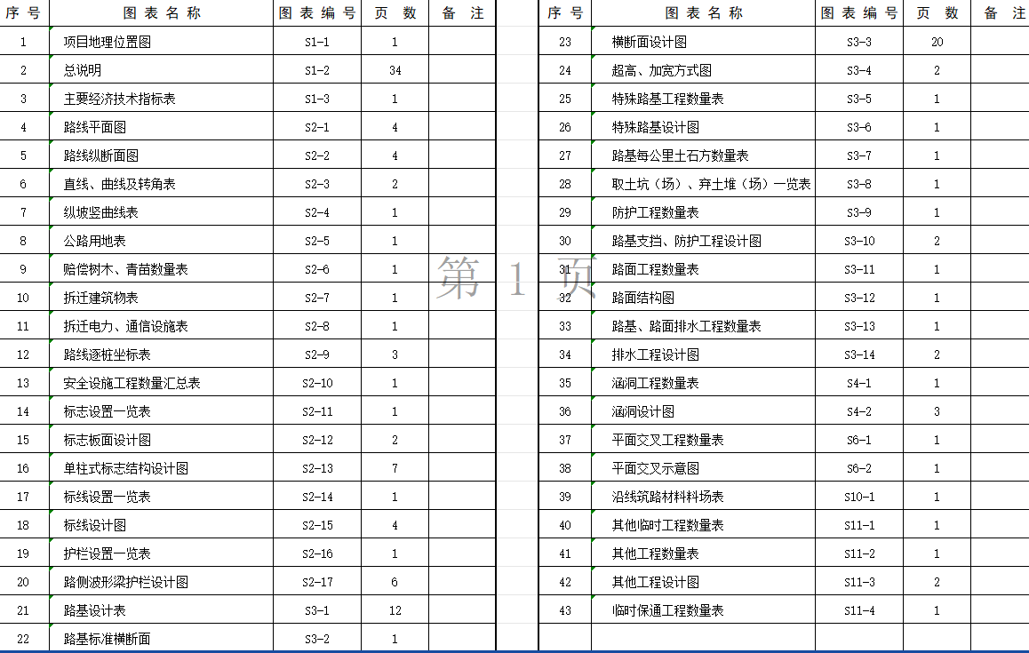 图纸目录: